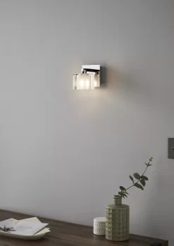GoodHome Shafat White & Silver Chrome Effect Wired Wall Light