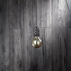 Inlight Mead Matt Black Wood Effect Pendant Ceiling Light, (Dia)240mm
