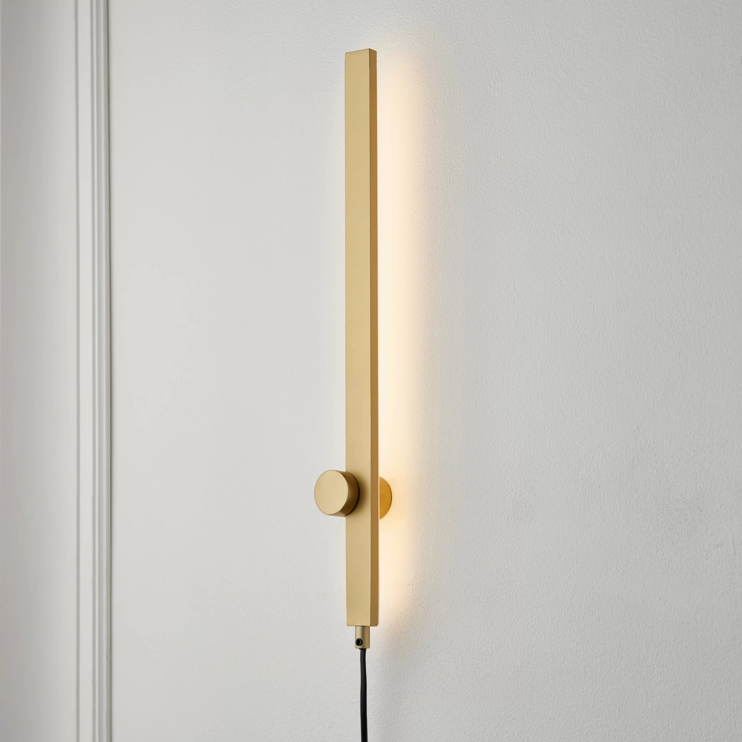 The modern bar design of this Line brass wall light is ideal for any modern home and will add a soft warm glow to any room.